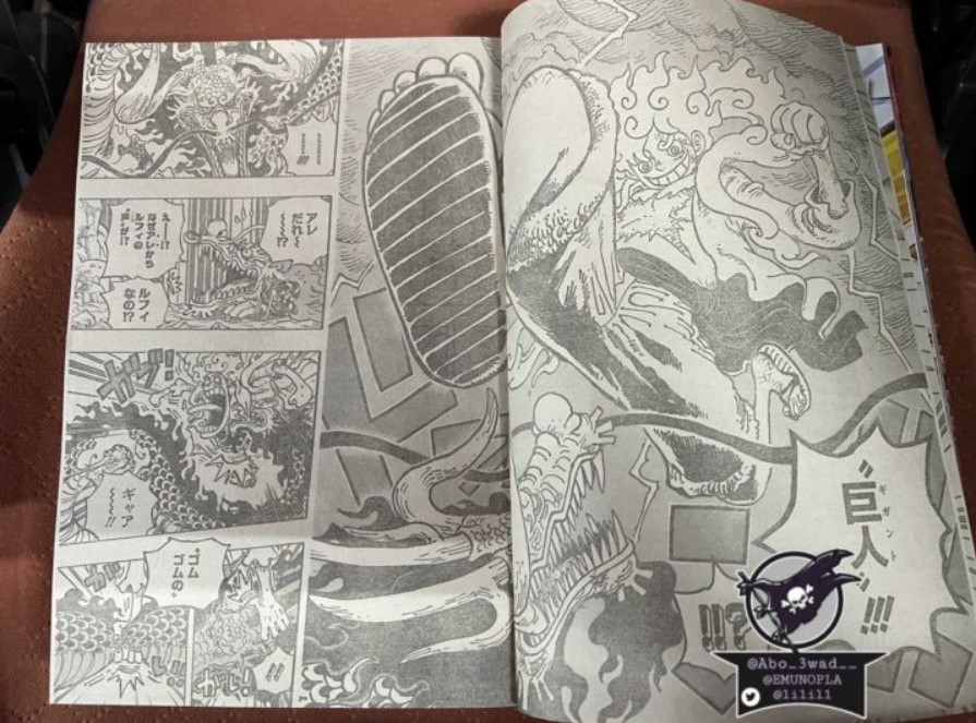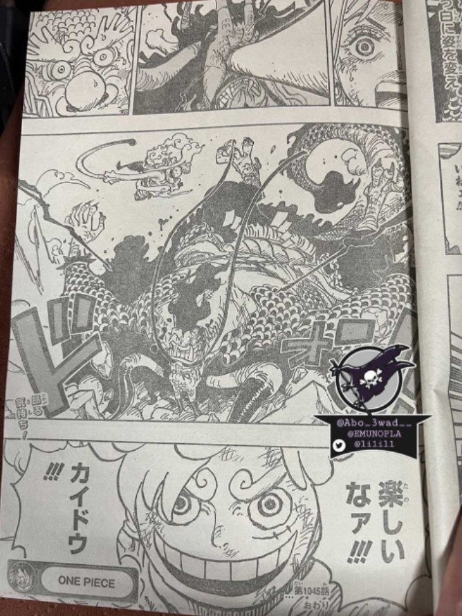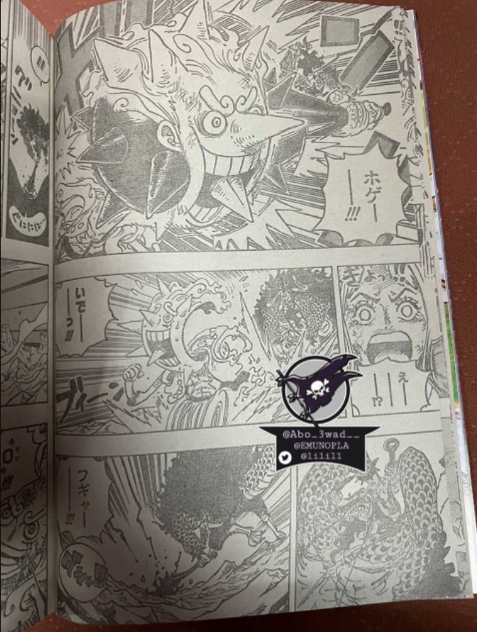 Finalmente teremos o início da luta do lendário Luffy contra o Kaido com o despertar (Gear 5). As imagens foram tiradas de uma revista em japonês.